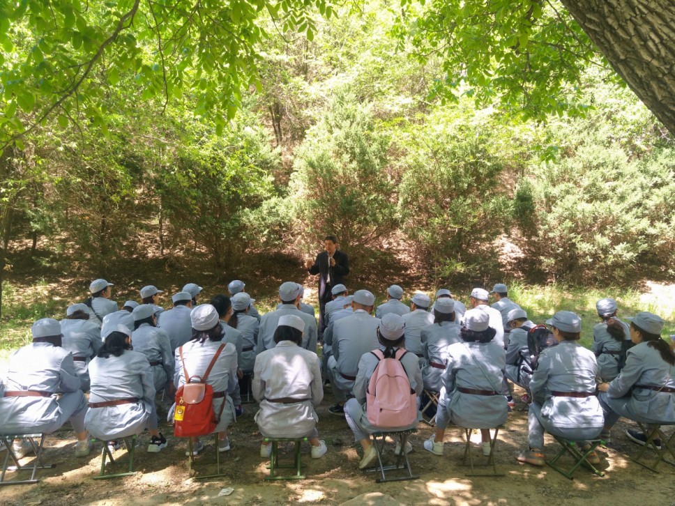 每到一处革命旧址,我们都要坐在小板凳上,聆听各个老师的悉心教学,仿佛回到了那个年代,即使风吹日晒,即使条件艰苦,学习的热情也永不退减。在张思德雕像下,郭随万老师的《张思德及其为人民服务精神启示》主题党课,让我们深刻理解了张思德精神的内涵:对工作毫无怨言,勤勤恳恳踏踏实实工作的精神;对同志真心诚意,处处与人为善,时时助人为乐的精神;对人民尽心尽力,一心一意为人民服务的精神。革命时期的共产党员,他们为了党,为了人民,随时可以奉献自己的一切;他们就像“清凉山上的草一样”,平凡、普通,思想却伟大、高尚。在杨家岭的树荫下,霍雯老师的《延安时期水乳交融的党群干群关系》主题党课,生动活泼地讲述了延安时期党中央及毛泽东等领导干部通过拥民、爱民、与人民群众建立起水乳交融、血肉相连的关系,我们的革命才逐渐由弱到强,由局部胜利到逐步取得全面胜利。在枣园的墙边,刘金峰老师的《窑洞里有马列主义》主题党课,诙谐幽默的小故事讲述了毛泽东在山沟沟里的窑洞中,领导全党学马列、用马列,创作了大量马克思主义中国化的著作的艰苦奋斗场景。如今我们在享受革命胜利果实的时候,莫忘“又学习,又玩耍”,莫忘践行群众路线,莫忘全心全意为人民服务。